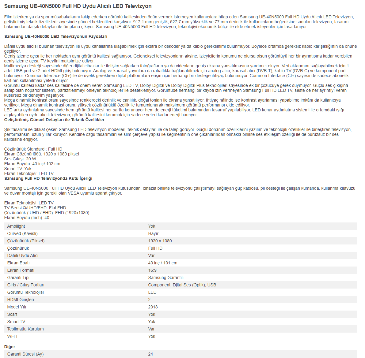SAMSUNG LED TV UE 40N5000 AUXTK 102CM